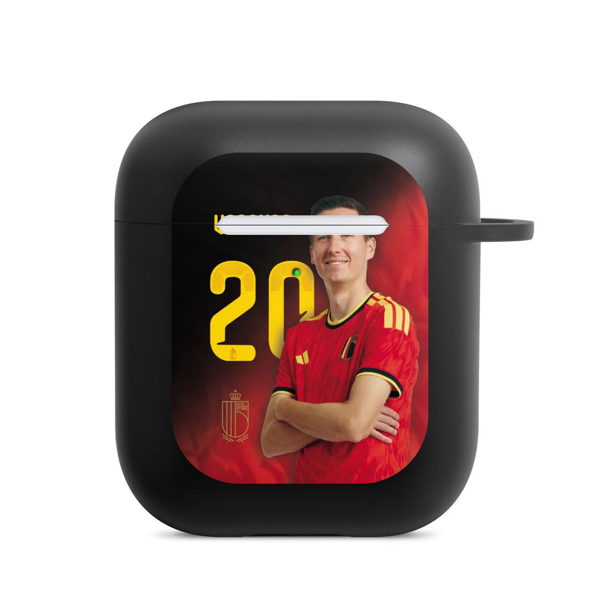 AirPods-fodralet är din praktiska och säkra förvaring för dina AirPods eller AirPods Pro. Tack vare den tillhörande knäppkroken kan du enkelt sätta fast AirPods-fodralet till ditt telefonhalsband, nyckelring eller väska. The wireless charging functionality can be still used at any time. Skalet är tillverkat av TPU, ett mycket hållbart och okrossbart material. Skalet finns i svart och vitt. Det bästa med skalet: du kan anpassa framsidan med din egen design eller med ett av våra färdiga print!