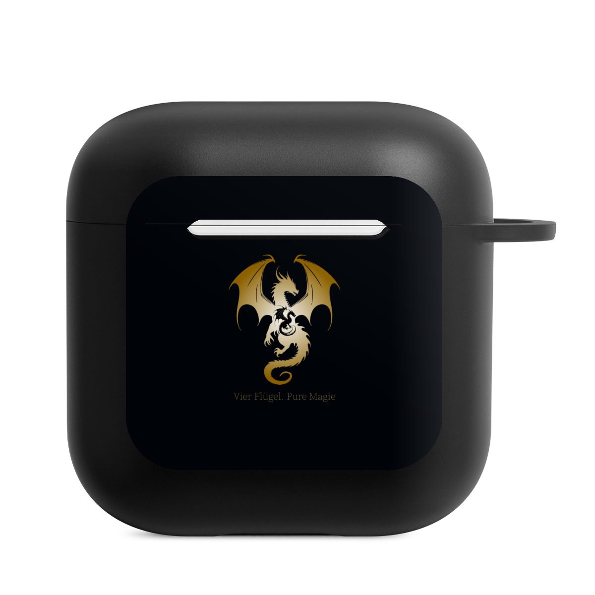 AirPods-fodralet är din praktiska och säkra förvaring för dina AirPods eller AirPods Pro. Tack vare den tillhörande knäppkroken kan du enkelt sätta fast AirPods-fodralet till ditt telefonhalsband, nyckelring eller väska. The wireless charging functionality can be still used at any time. Skalet är tillverkat av TPU, ett mycket hållbart och okrossbart material. Skalet finns i svart och vitt. Det bästa med skalet: du kan anpassa framsidan med din egen design eller med ett av våra färdiga print!