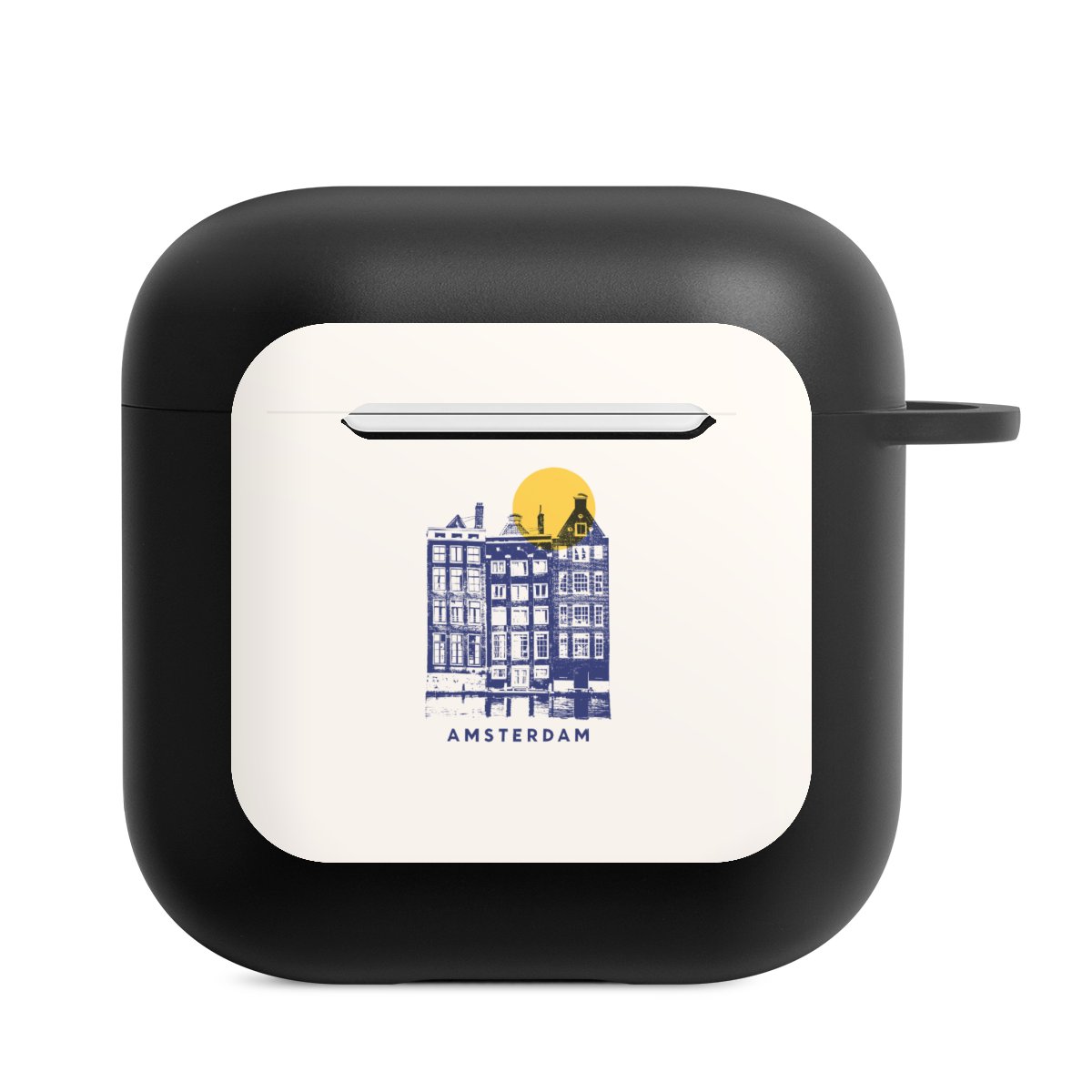 AirPods-fodralet är din praktiska och säkra förvaring för dina AirPods eller AirPods Pro. Tack vare den tillhörande knäppkroken kan du enkelt sätta fast AirPods-fodralet till ditt telefonhalsband, nyckelring eller väska. The wireless charging functionality can be still used at any time. Skalet är tillverkat av TPU, ett mycket hållbart och okrossbart material. Skalet finns i svart och vitt. Det bästa med skalet: du kan anpassa framsidan med din egen design eller med ett av våra färdiga print!