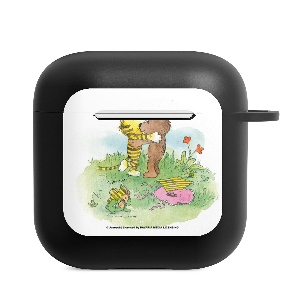 AirPods-fodralet är din praktiska och säkra förvaring för dina AirPods eller AirPods Pro. Tack vare den tillhörande knäppkroken kan du enkelt sätta fast AirPods-fodralet till ditt telefonhalsband, nyckelring eller väska. The wireless charging functionality can be still used at any time. Skalet är tillverkat av TPU, ett mycket hållbart och okrossbart material. Skalet finns i svart och vitt. Det bästa med skalet: du kan anpassa framsidan med din egen design eller med ett av våra färdiga print!