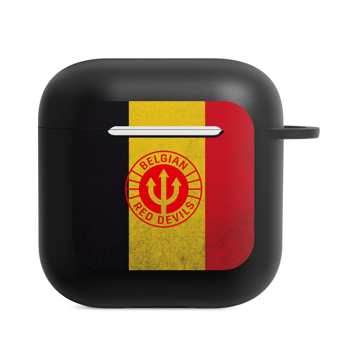 AirPods-fodralet är din praktiska och säkra förvaring för dina AirPods eller AirPods Pro. Tack vare den tillhörande knäppkroken kan du enkelt sätta fast AirPods-fodralet till ditt telefonhalsband, nyckelring eller väska. The wireless charging functionality can be still used at any time. Skalet är tillverkat av TPU, ett mycket hållbart och okrossbart material. Skalet finns i svart och vitt. Det bästa med skalet: du kan anpassa framsidan med din egen design eller med ett av våra färdiga print!
