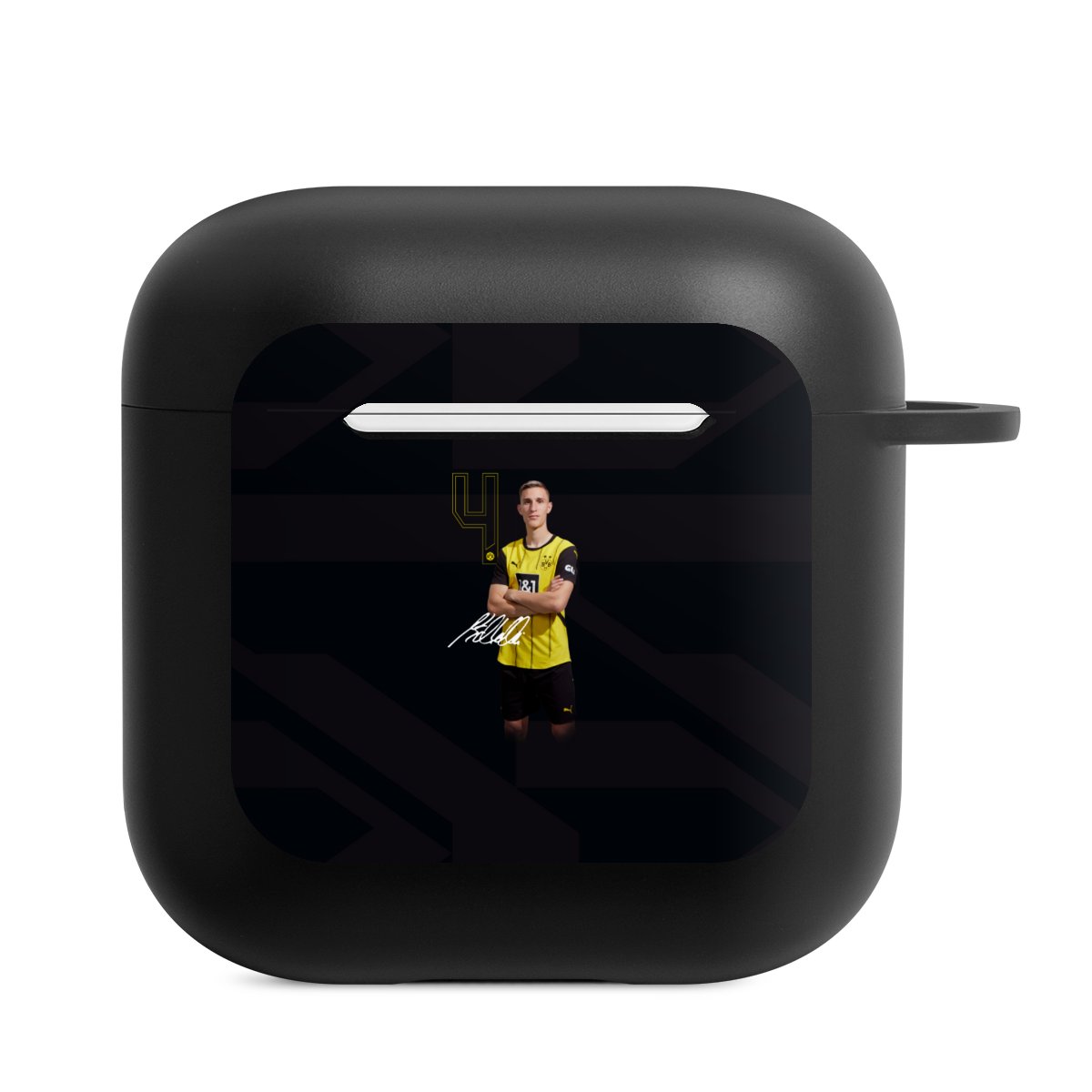 AirPods-fodralet är din praktiska och säkra förvaring för dina AirPods eller AirPods Pro. Tack vare den tillhörande knäppkroken kan du enkelt sätta fast AirPods-fodralet till ditt telefonhalsband, nyckelring eller väska. The wireless charging functionality can be still used at any time. Skalet är tillverkat av TPU, ett mycket hållbart och okrossbart material. Skalet finns i svart och vitt. Det bästa med skalet: du kan anpassa framsidan med din egen design eller med ett av våra färdiga print!