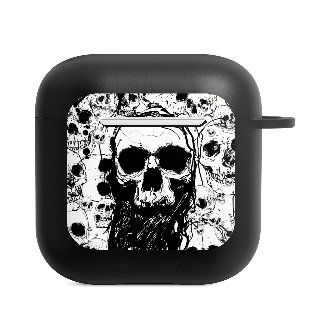 AirPods-fodralet är din praktiska och säkra förvaring för dina AirPods eller AirPods Pro. Tack vare den tillhörande knäppkroken kan du enkelt sätta fast AirPods-fodralet till ditt telefonhalsband, nyckelring eller väska. The wireless charging functionality can be still used at any time. Skalet är tillverkat av TPU, ett mycket hållbart och okrossbart material. Skalet finns i svart och vitt. Det bästa med skalet: du kan anpassa framsidan med din egen design eller med ett av våra färdiga print!