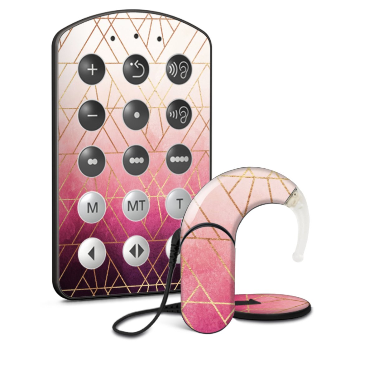 Pink Ombre Triangles Gold Print