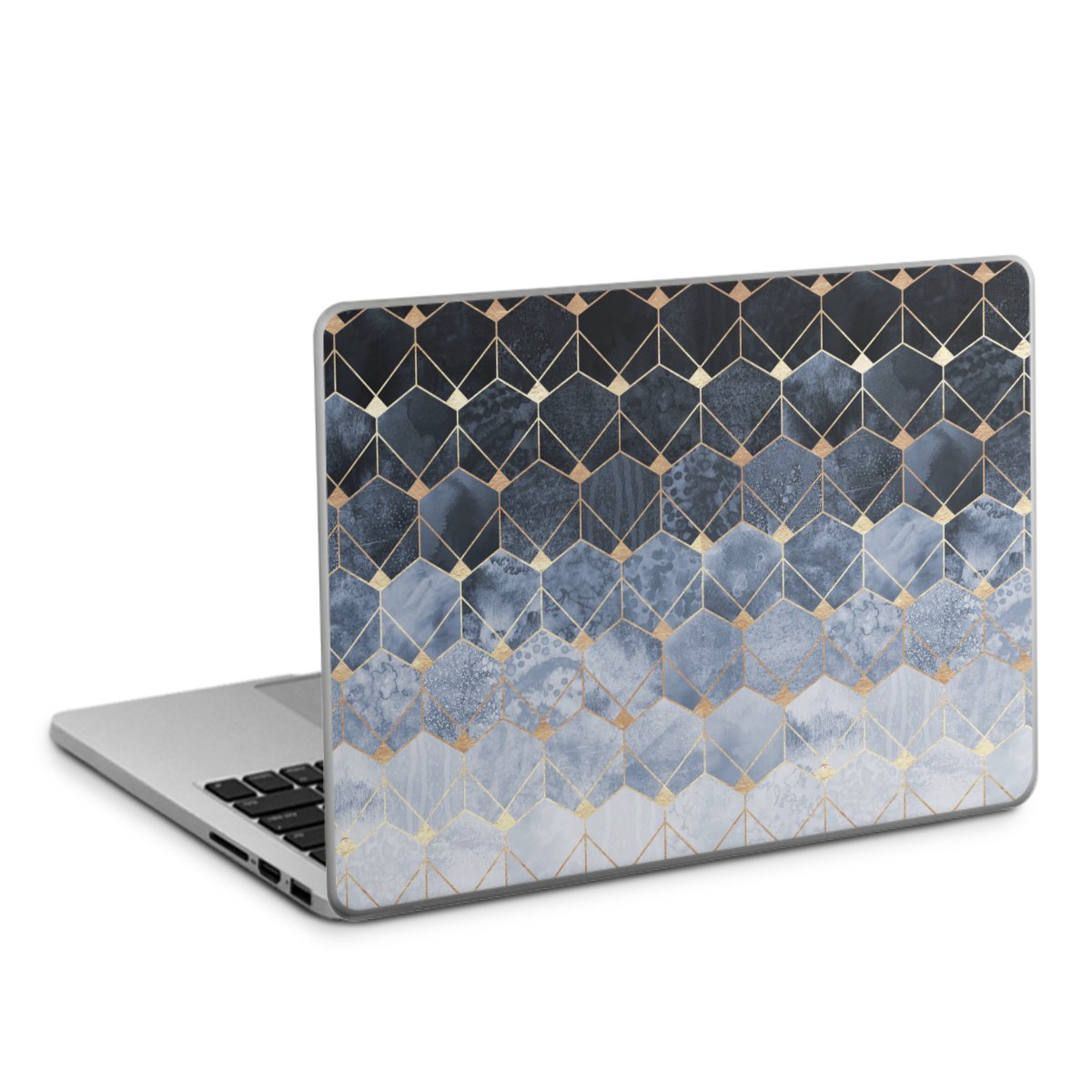 Blue Hexagons And Diamonds Gold Print