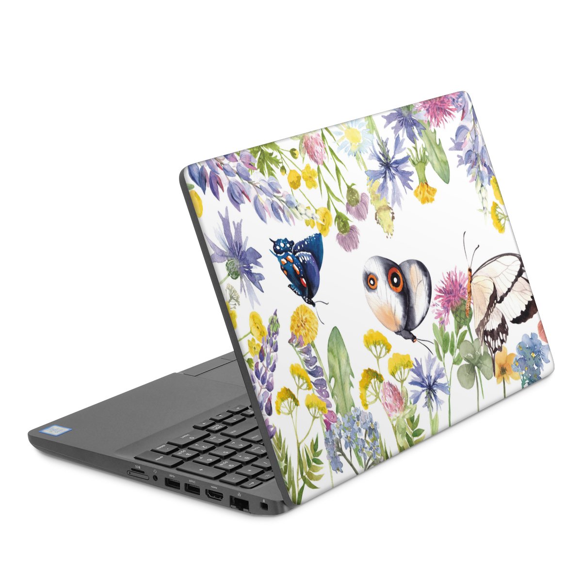 Bunte Frühlingsblumen und Schmetterlinge
