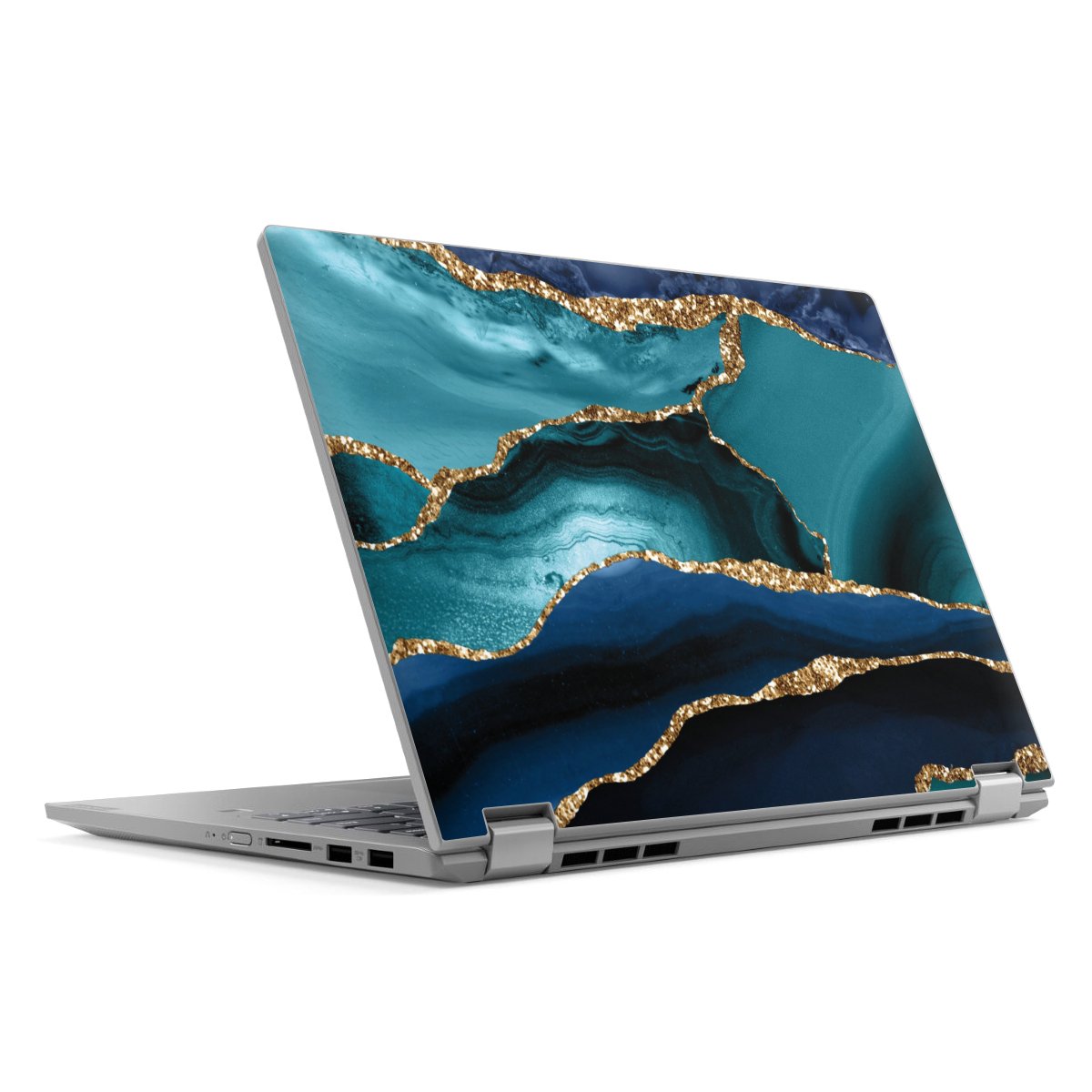 Dark and Light Blue Marble Gold Glitter Look