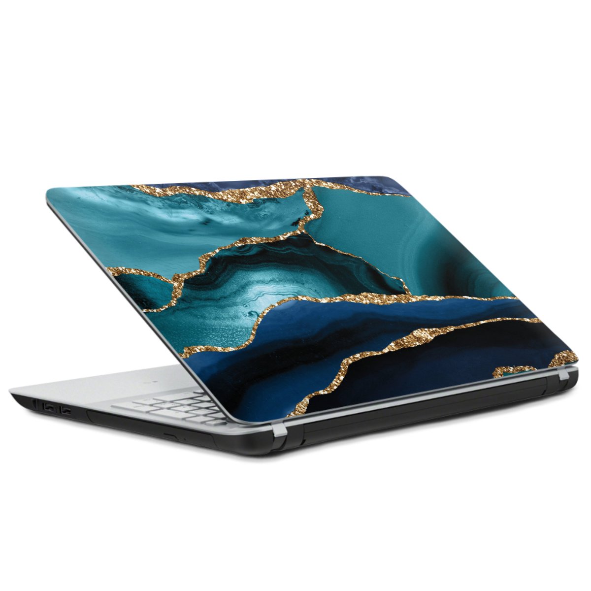 Dark and Light Blue Marble Gold Glitter Look
