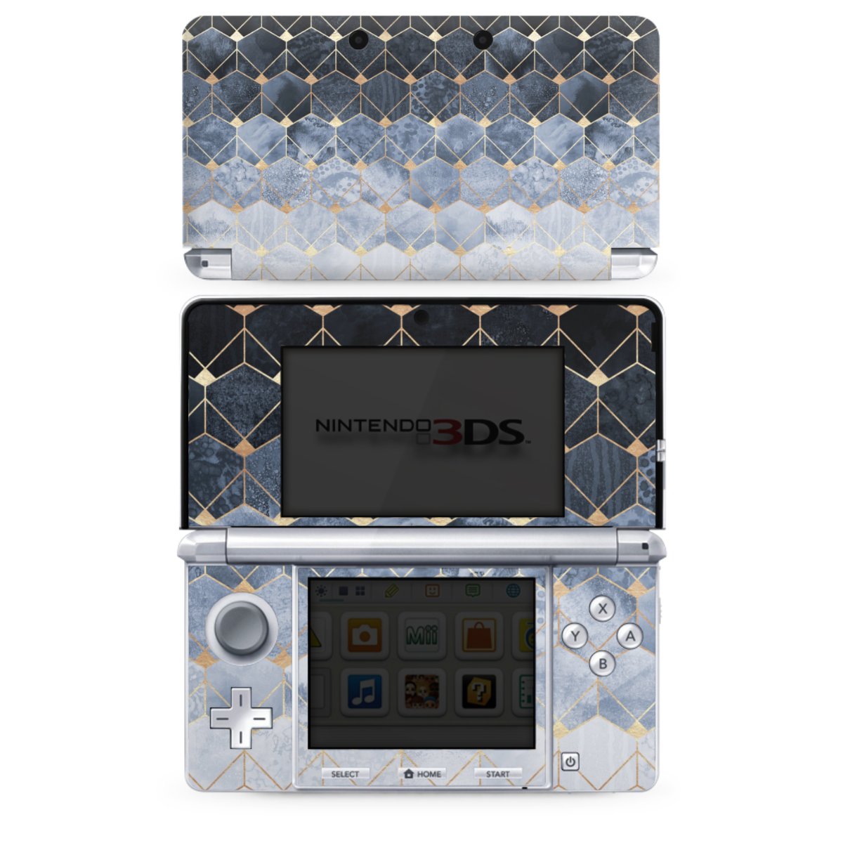 Blue Hexagons And Diamonds Gold Print