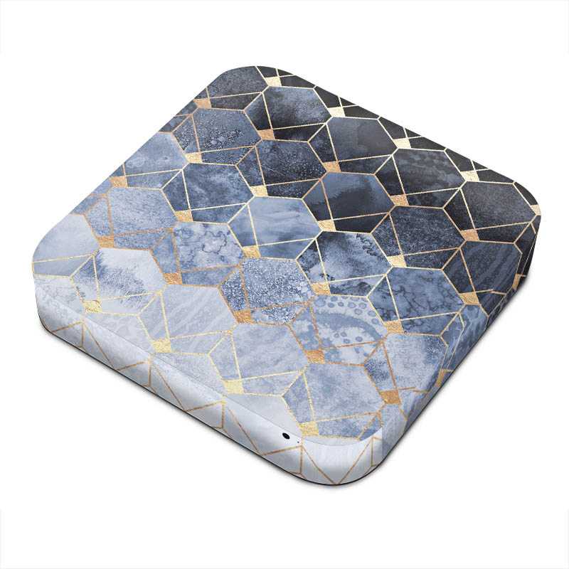 Blue Hexagons And Diamonds Gold Print