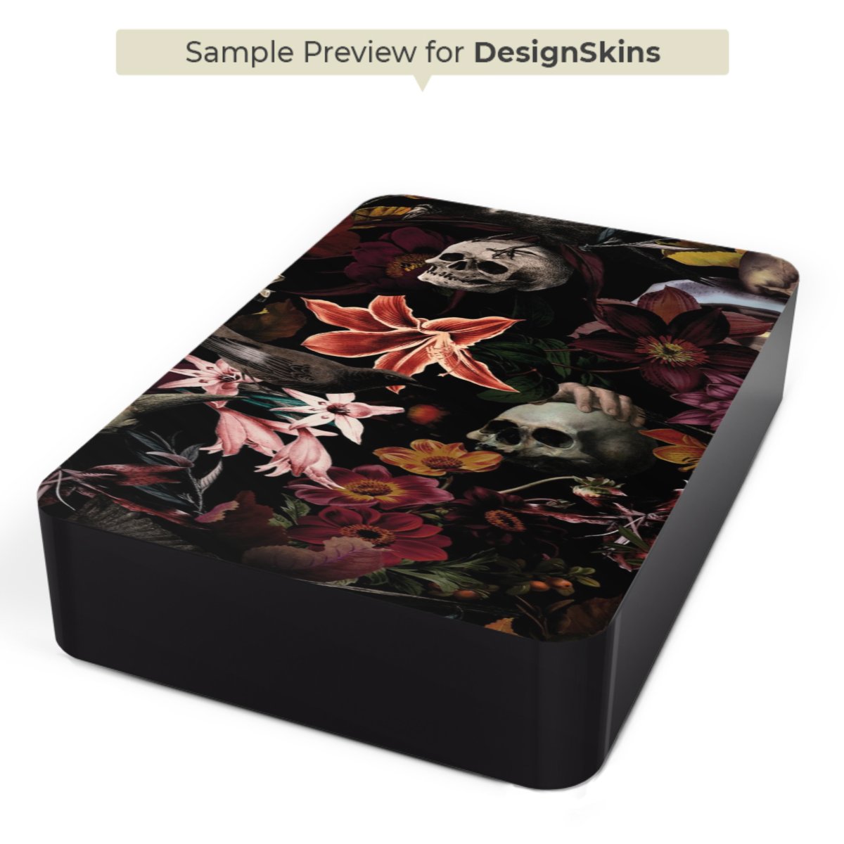 Skulls and Flowers on Dark Background