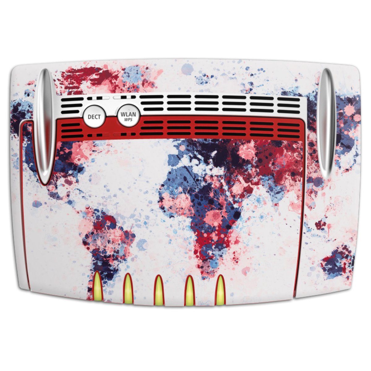 World Map Paint Splashes Blue Red