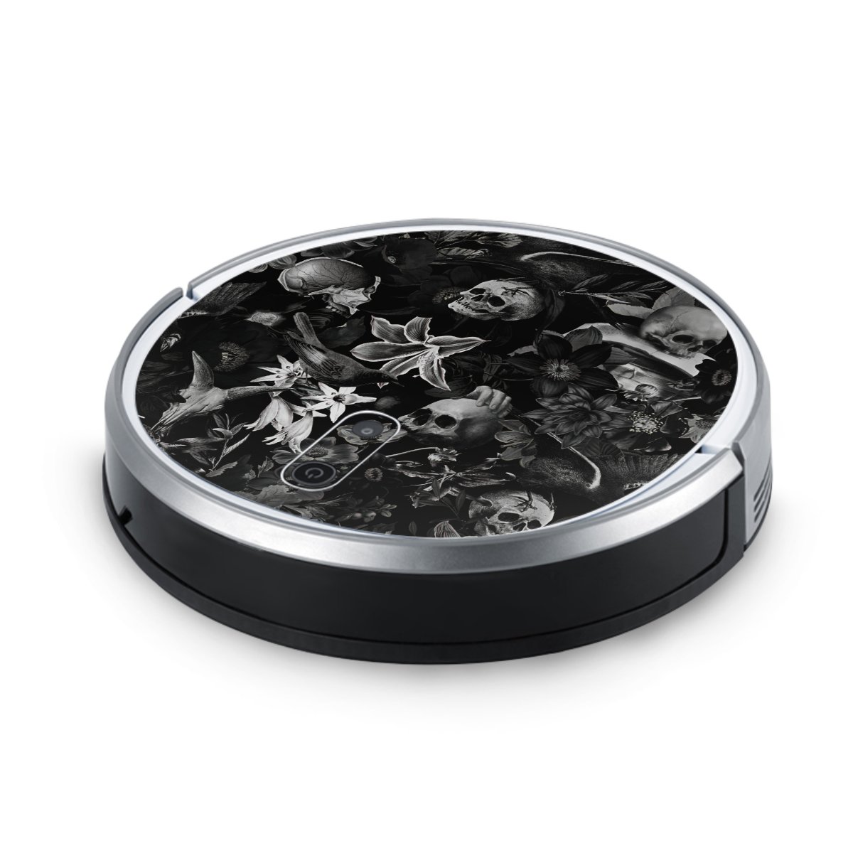 Skulls and Flowers on Black Background