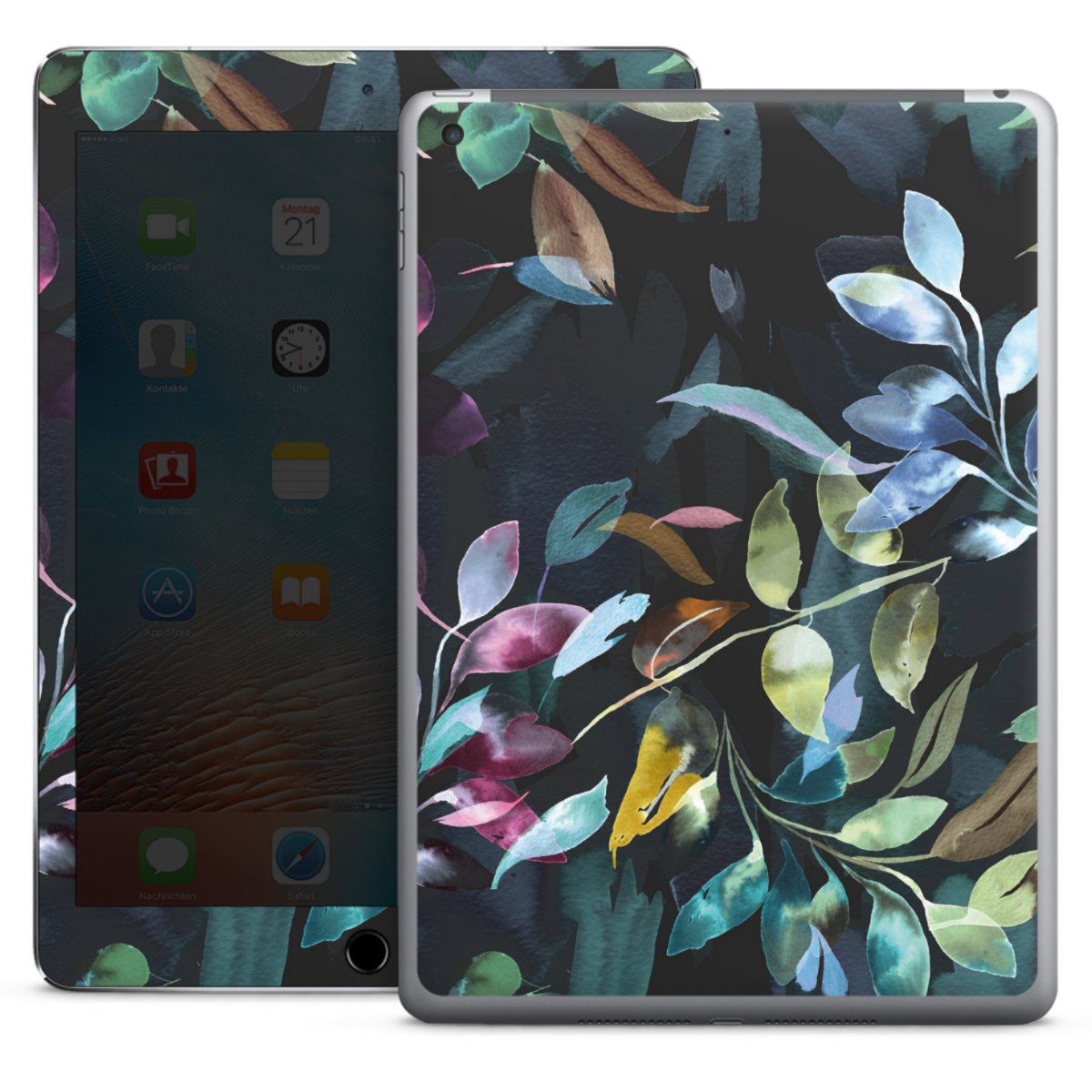 Watercolor Mystic Leaves Black