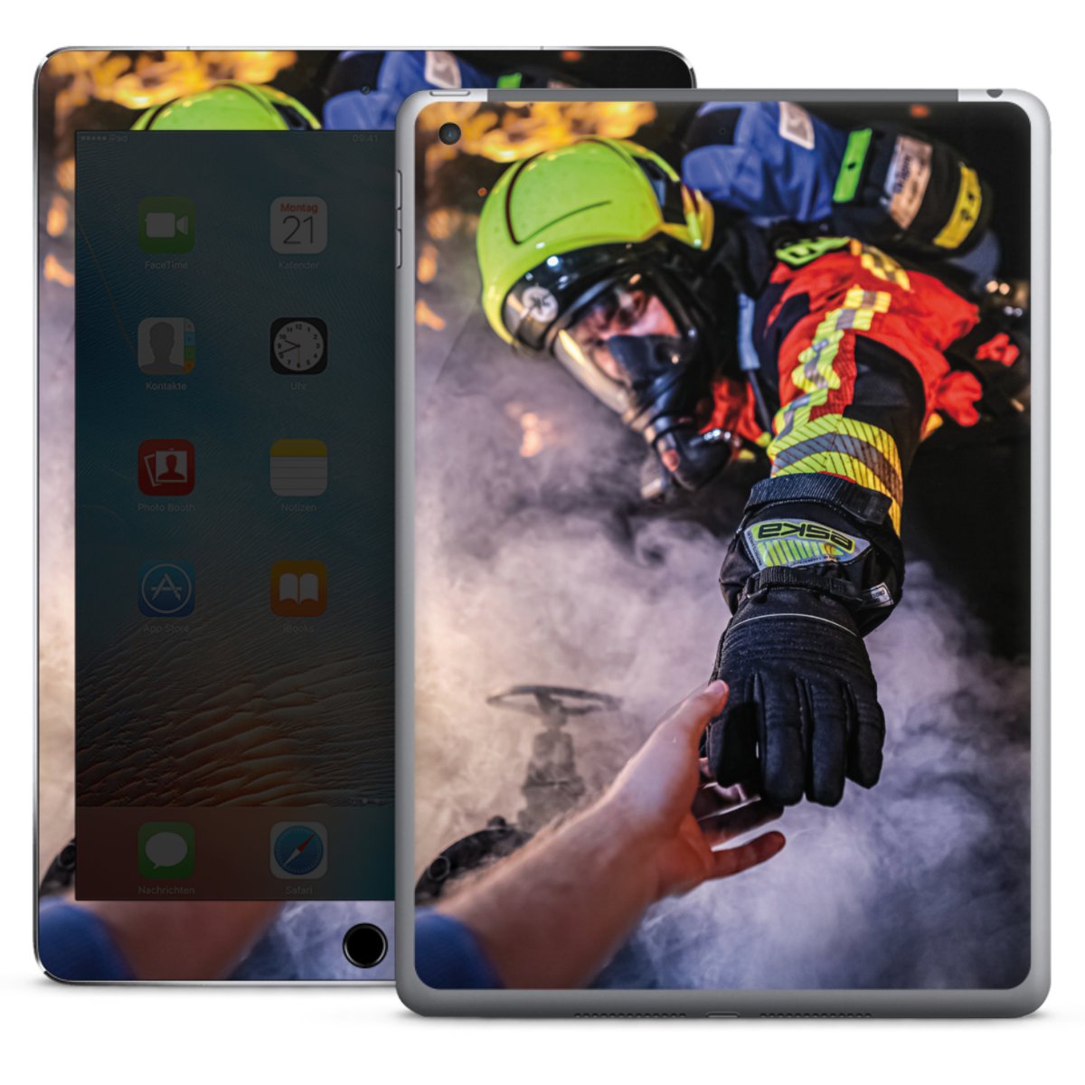 Firefighter Reaches for Hand
