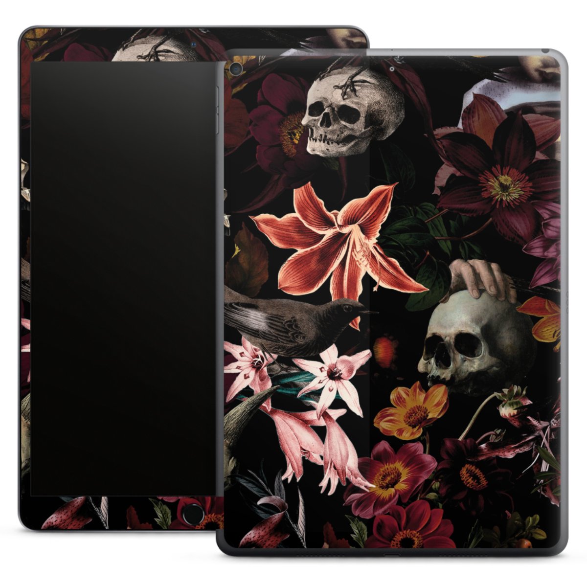 Skulls and Flowers on Dark Background