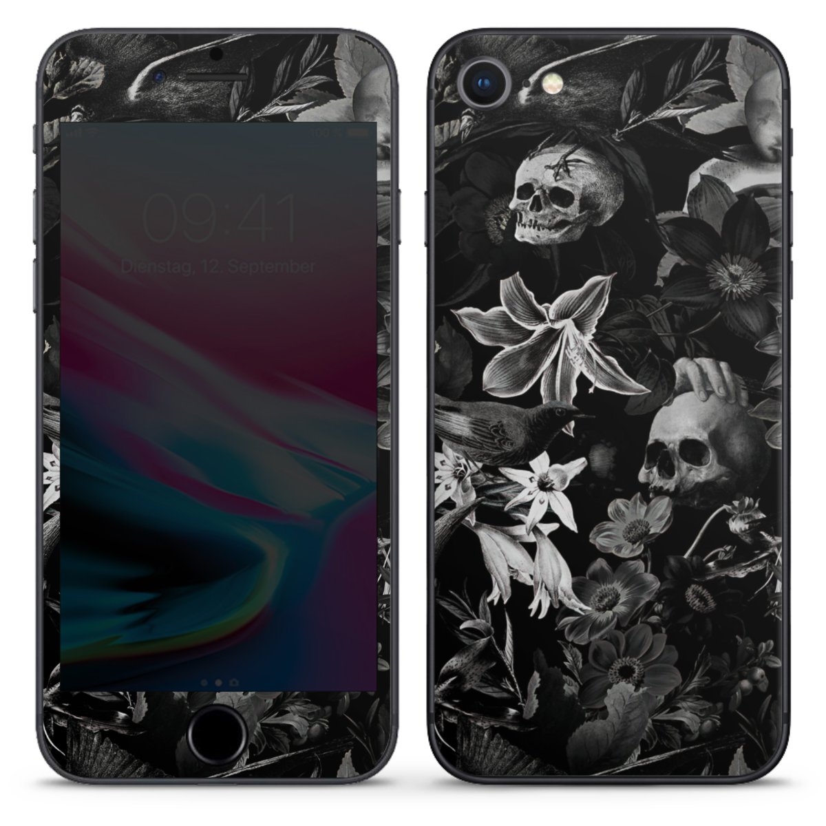 Skulls and Flowers on Black Background