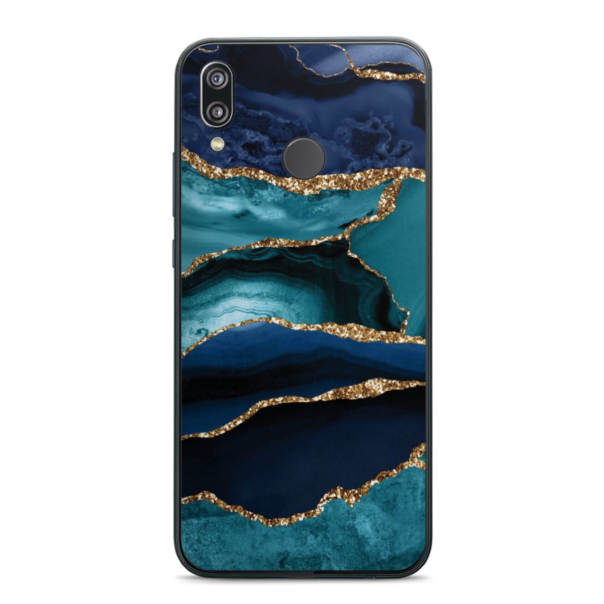 Dark and Light Blue Marble Gold Glitter Look