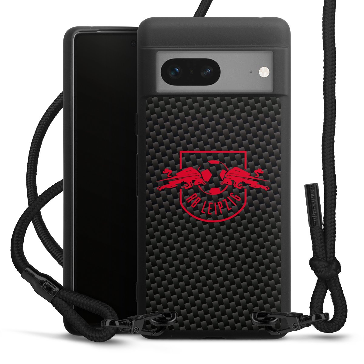 Rotes RB Leipzig Logo auf Carbonoptik