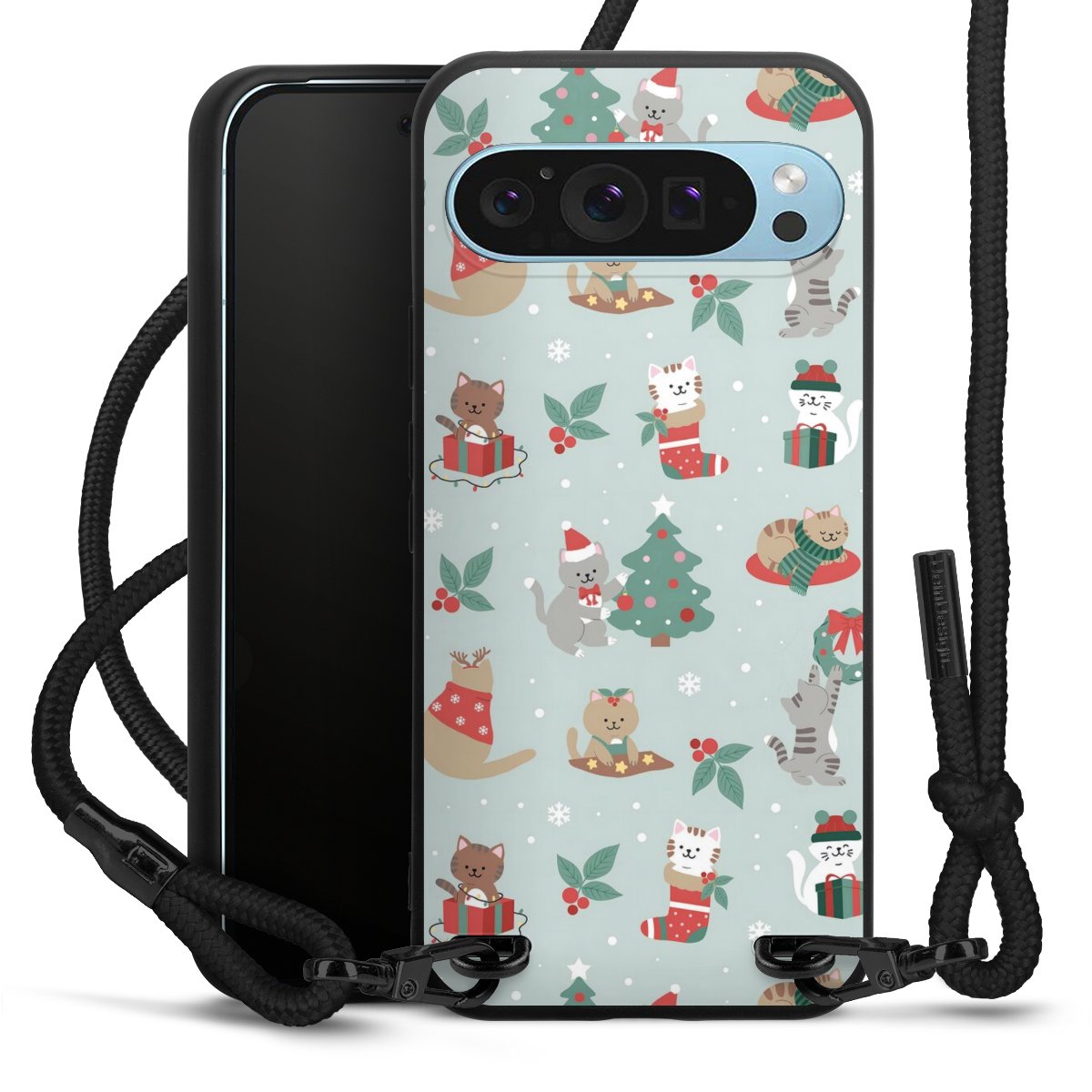 Cute Winter Wonderland Christmas Festive Cats on Teal