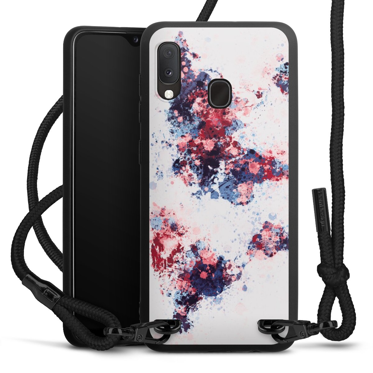World Map Paint Splashes Blue Red