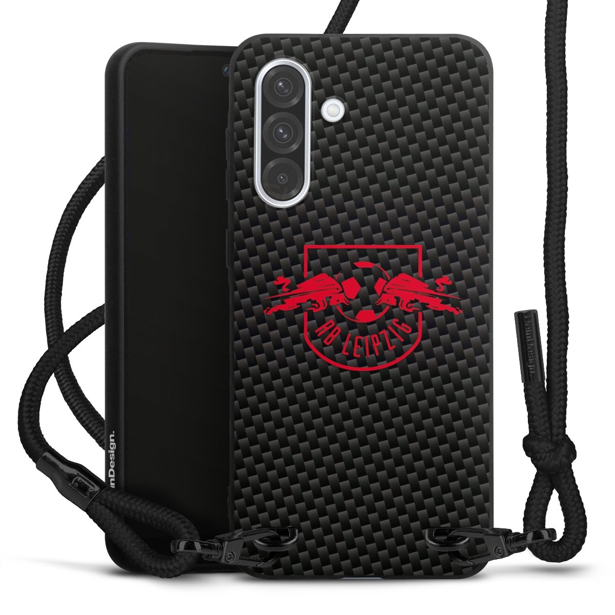Rotes RB Leipzig Logo auf Carbonoptik