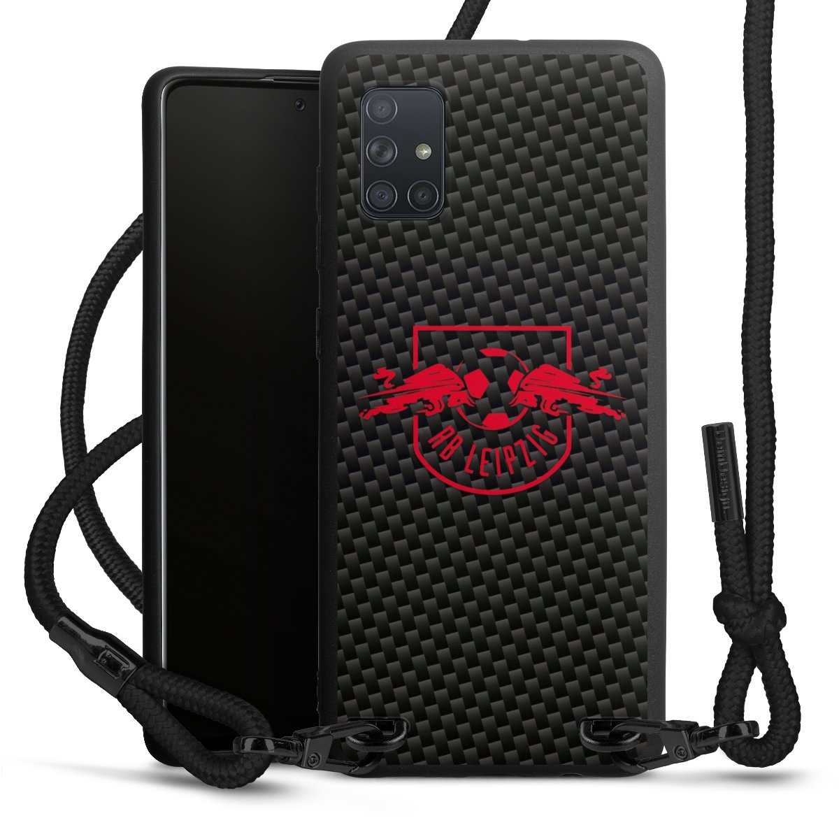 Rotes RB Leipzig Logo auf Carbonoptik