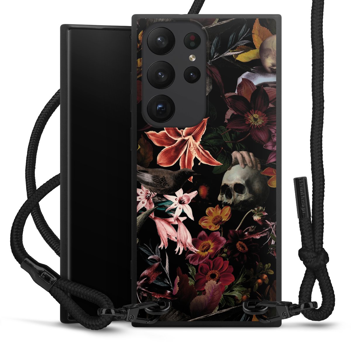 Skulls and Flowers on Dark Background