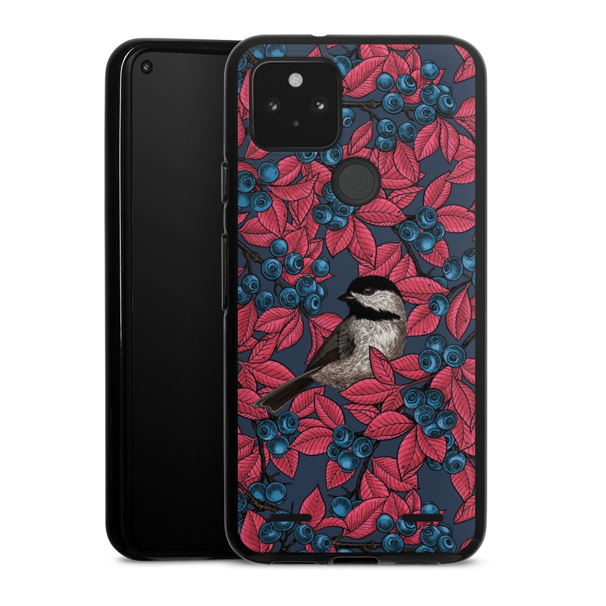 Blueberries And Birds On Navy
