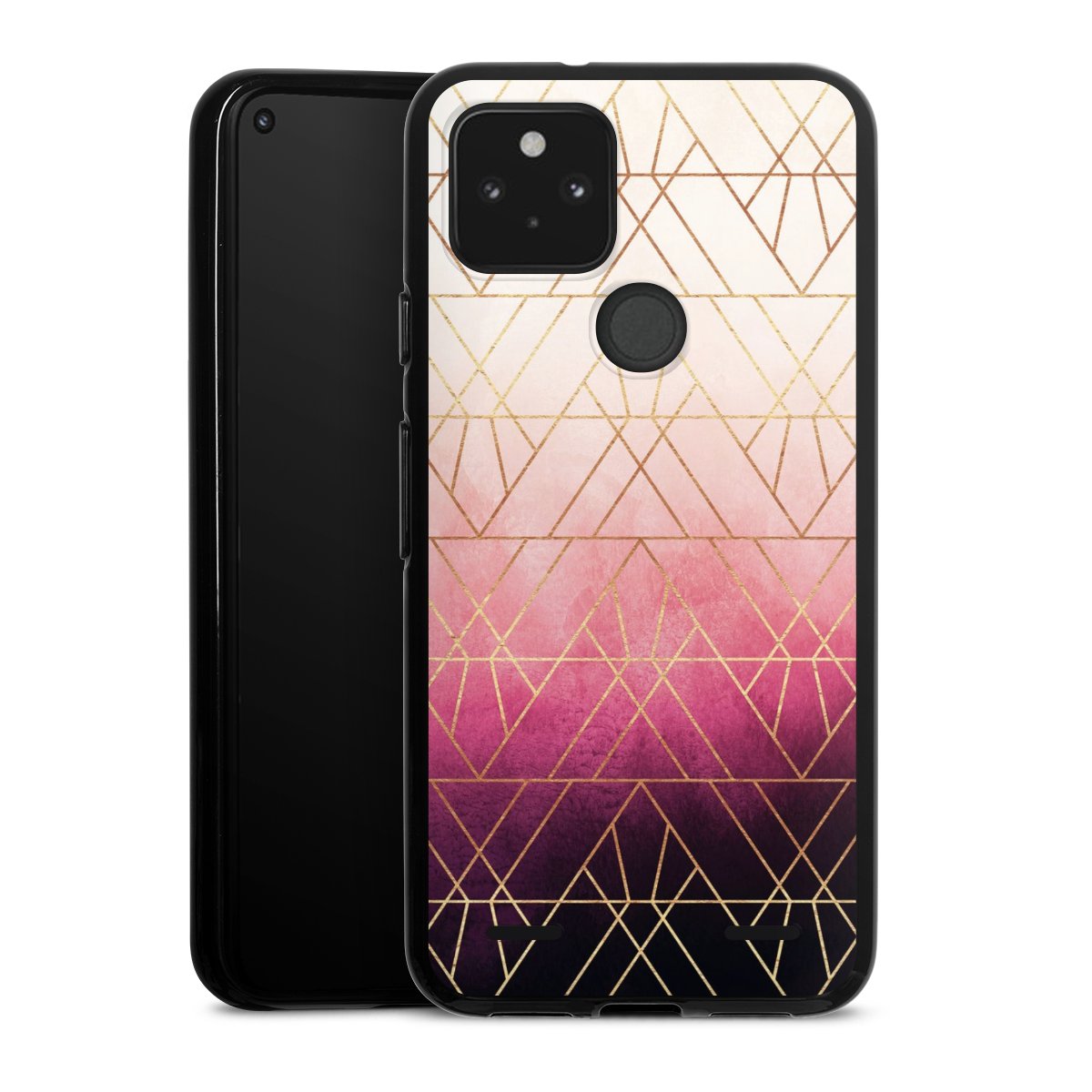 Pink Ombre Triangles Gold Print