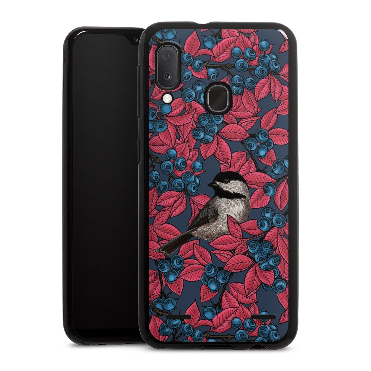 Blueberries And Birds On Navy