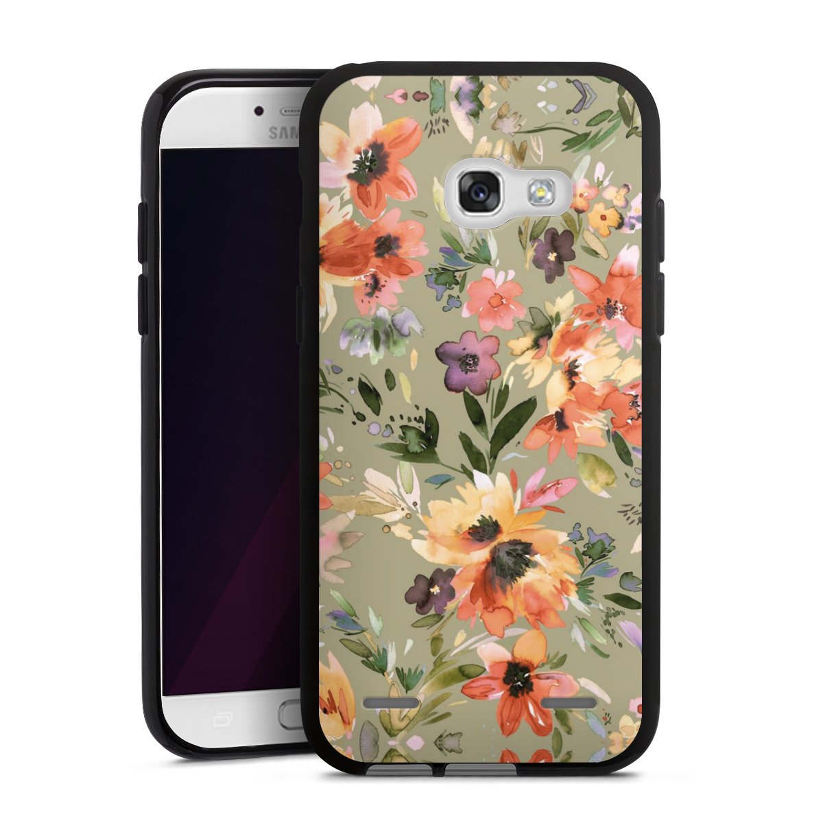 Painterly Tropical Flowers Sage Green