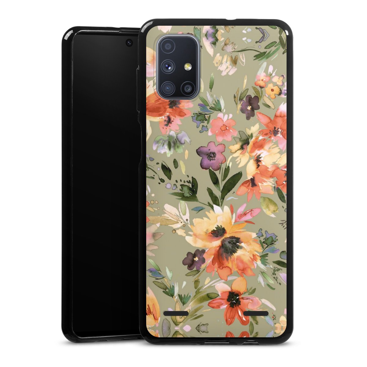 Painterly Tropical Flowers Sage Green