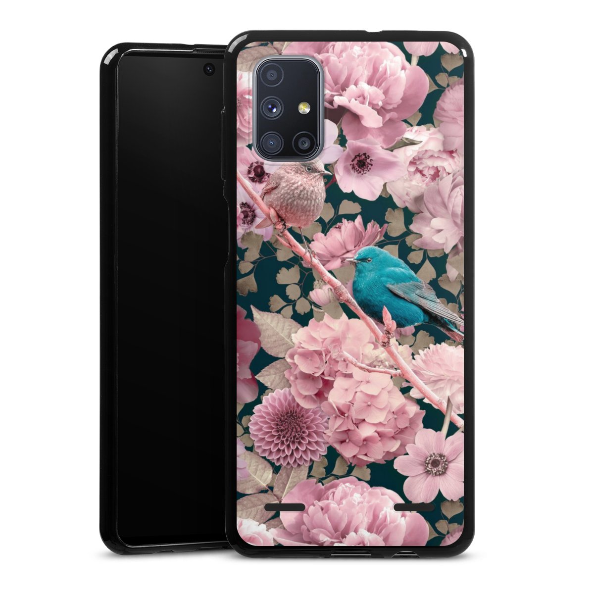 Sparrows in Pink Flower Pattern