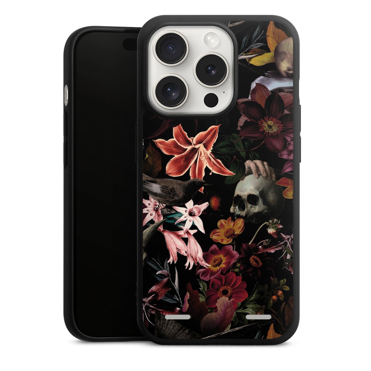 Skulls and Flowers on Dark Background