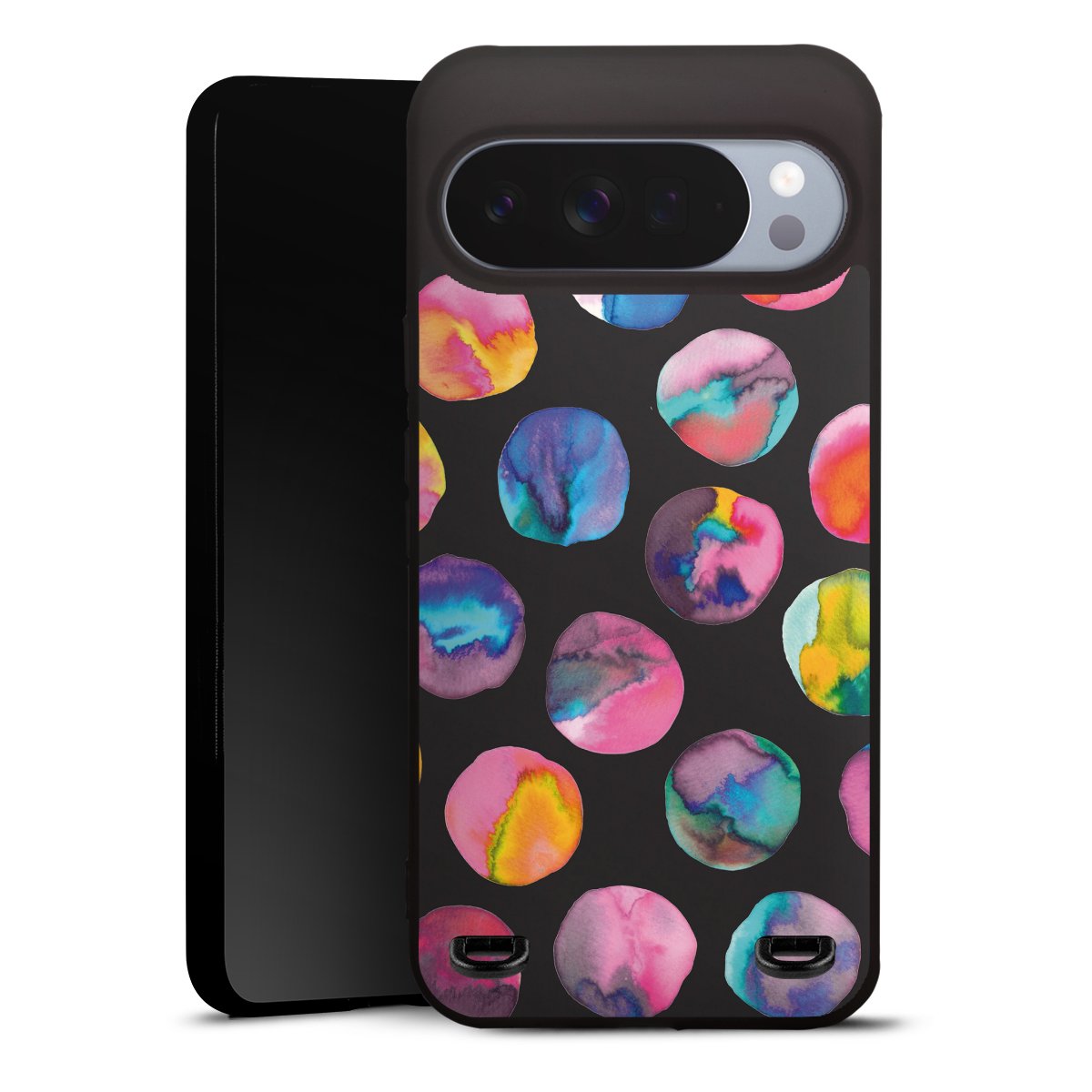 Colorful Ink Marbles Dots Black