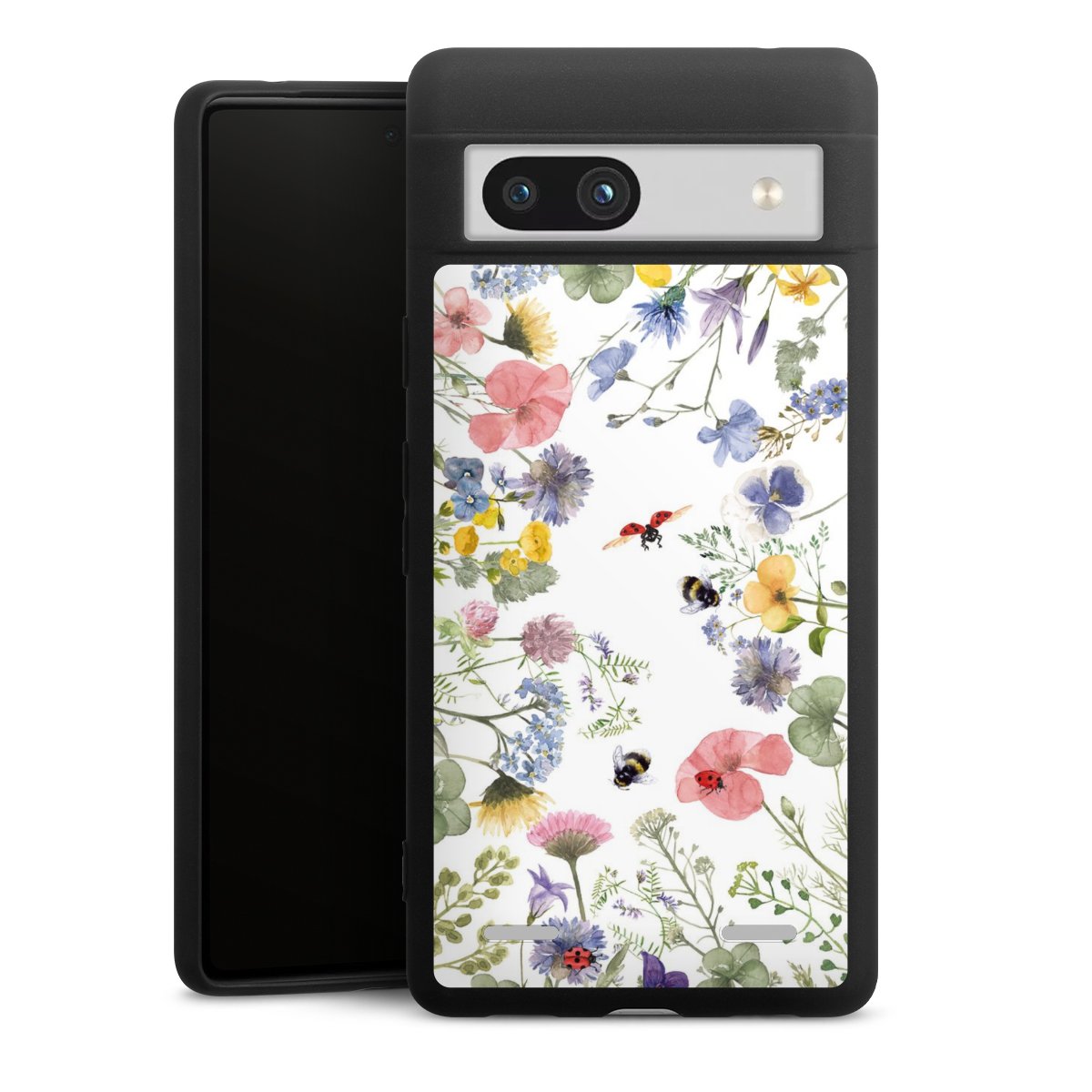 Bunte Frühlingsblumen und Bienen