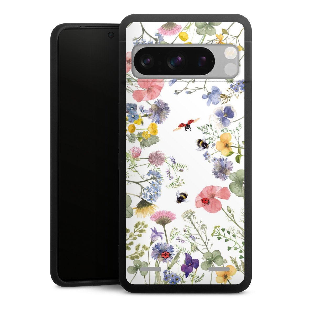 Bunte Frühlingsblumen und Bienen