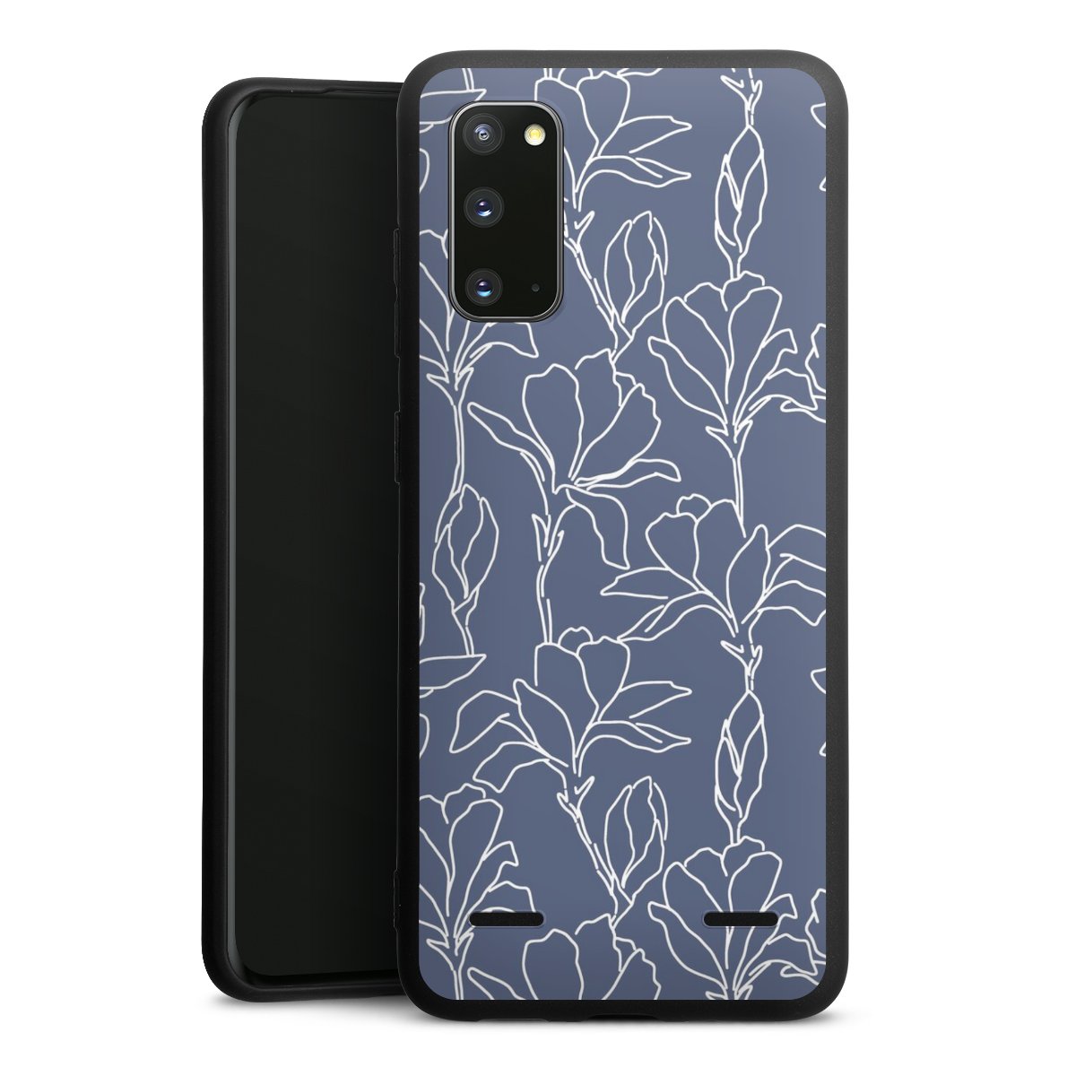 Flower Silhouettes on Blue
