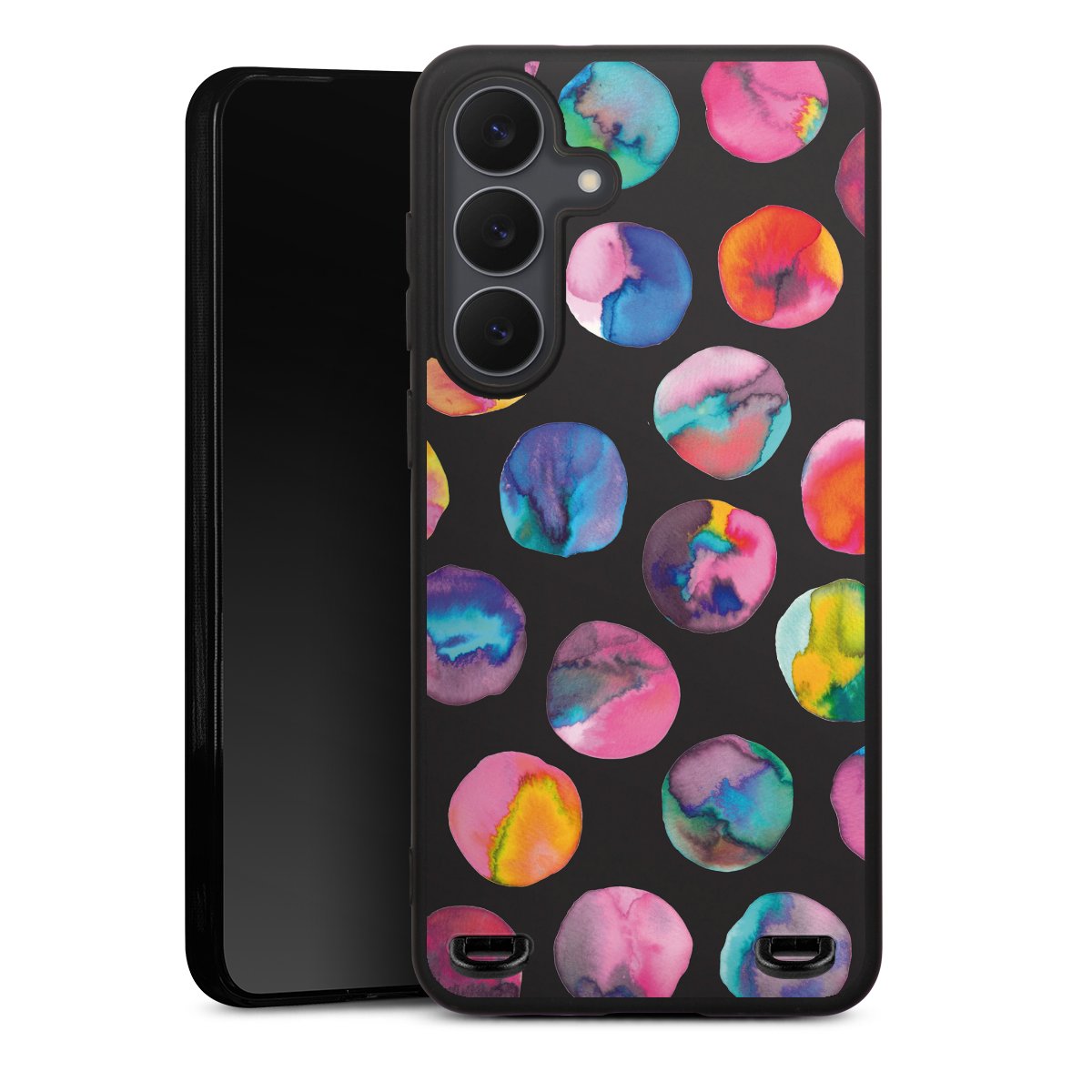Colorful Ink Marbles Dots Black