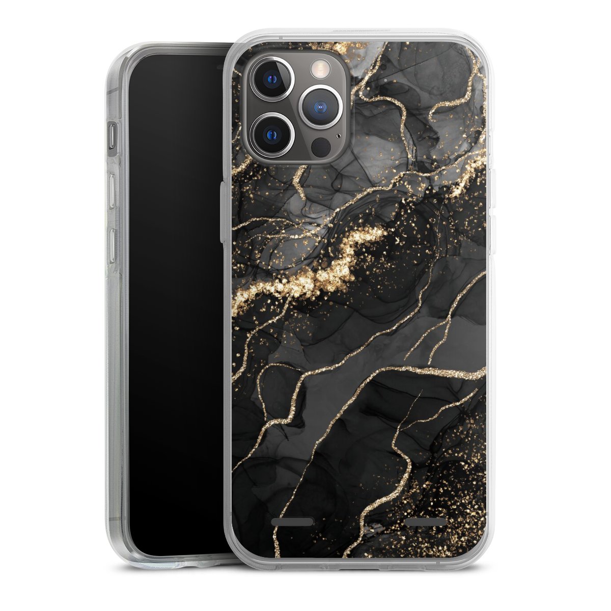Dark Marble Swirls Gold Look