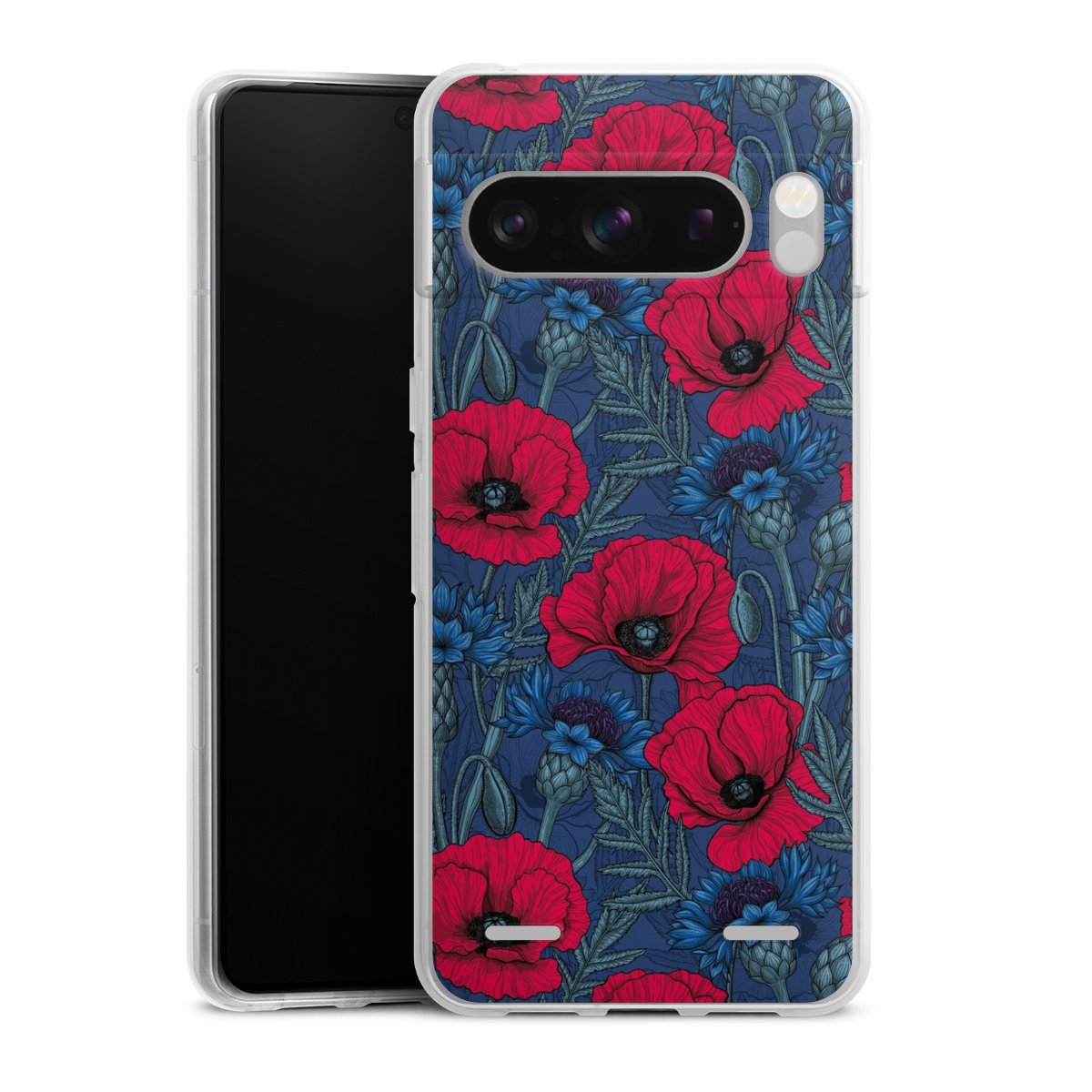 Poppies and Cornflowers on Blue