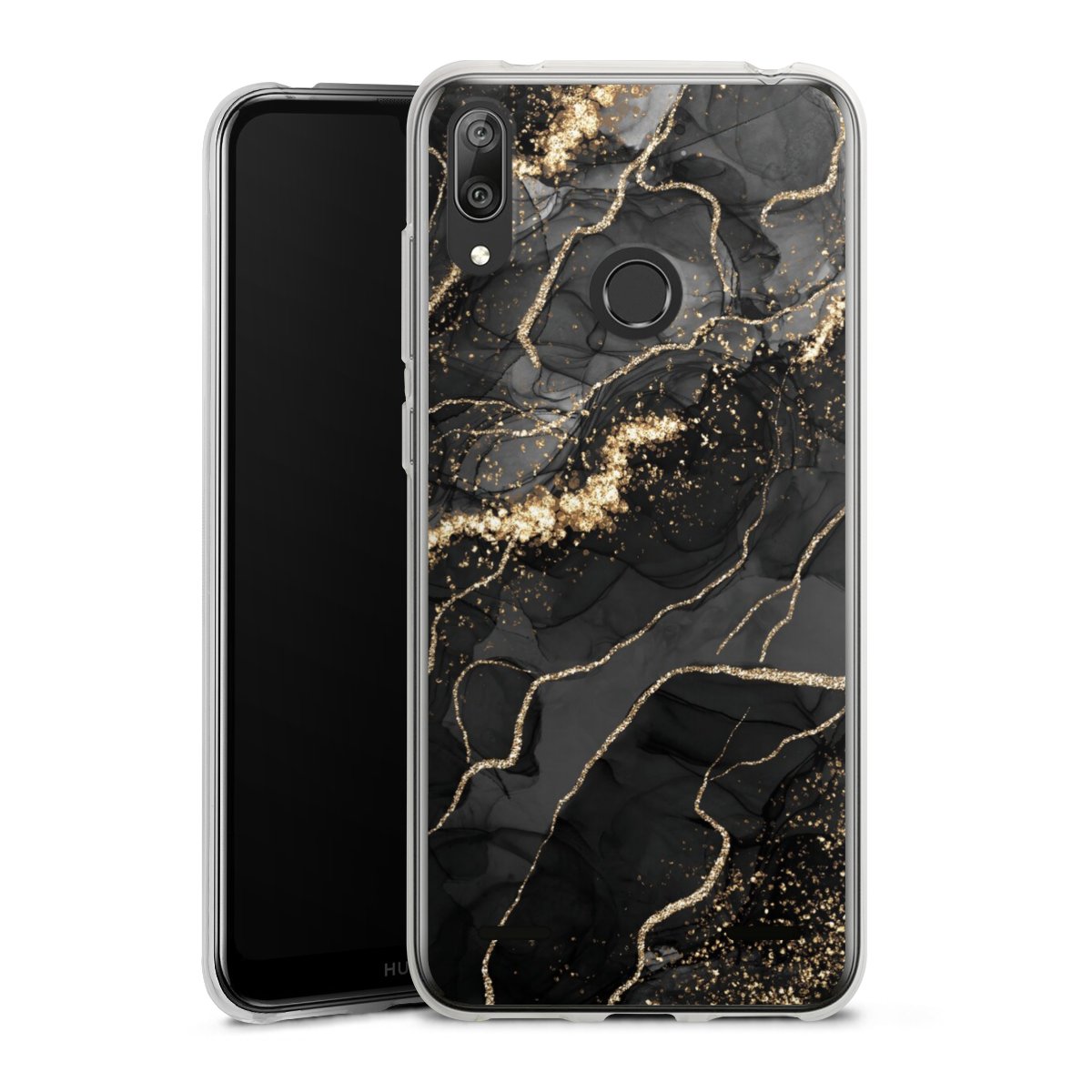 Dark Marble Swirls Gold Look