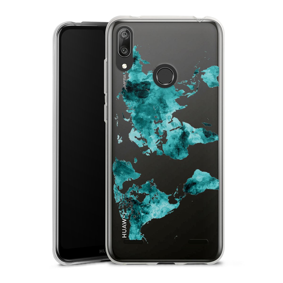 World Map Teal Transparent