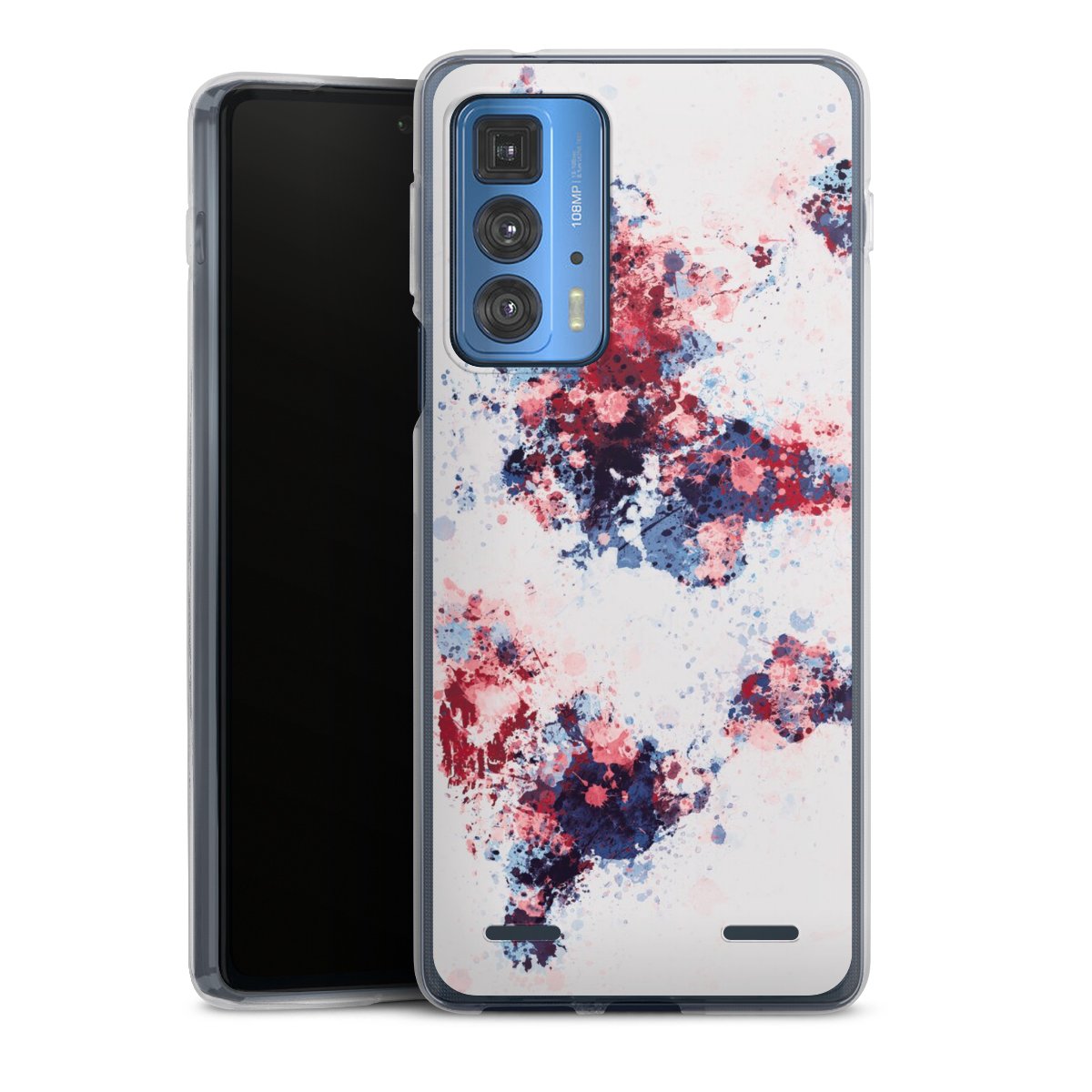 World Map Paint Splashes Blue Red
