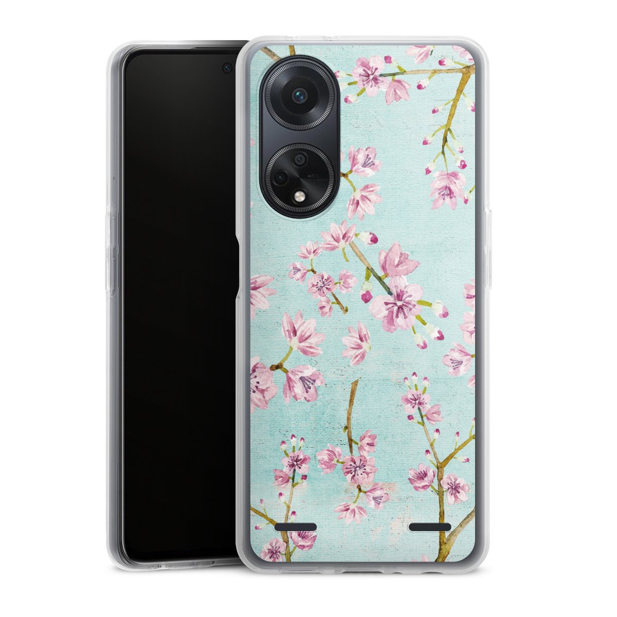 Cherry Blossom Twigs Pattern Light Blue