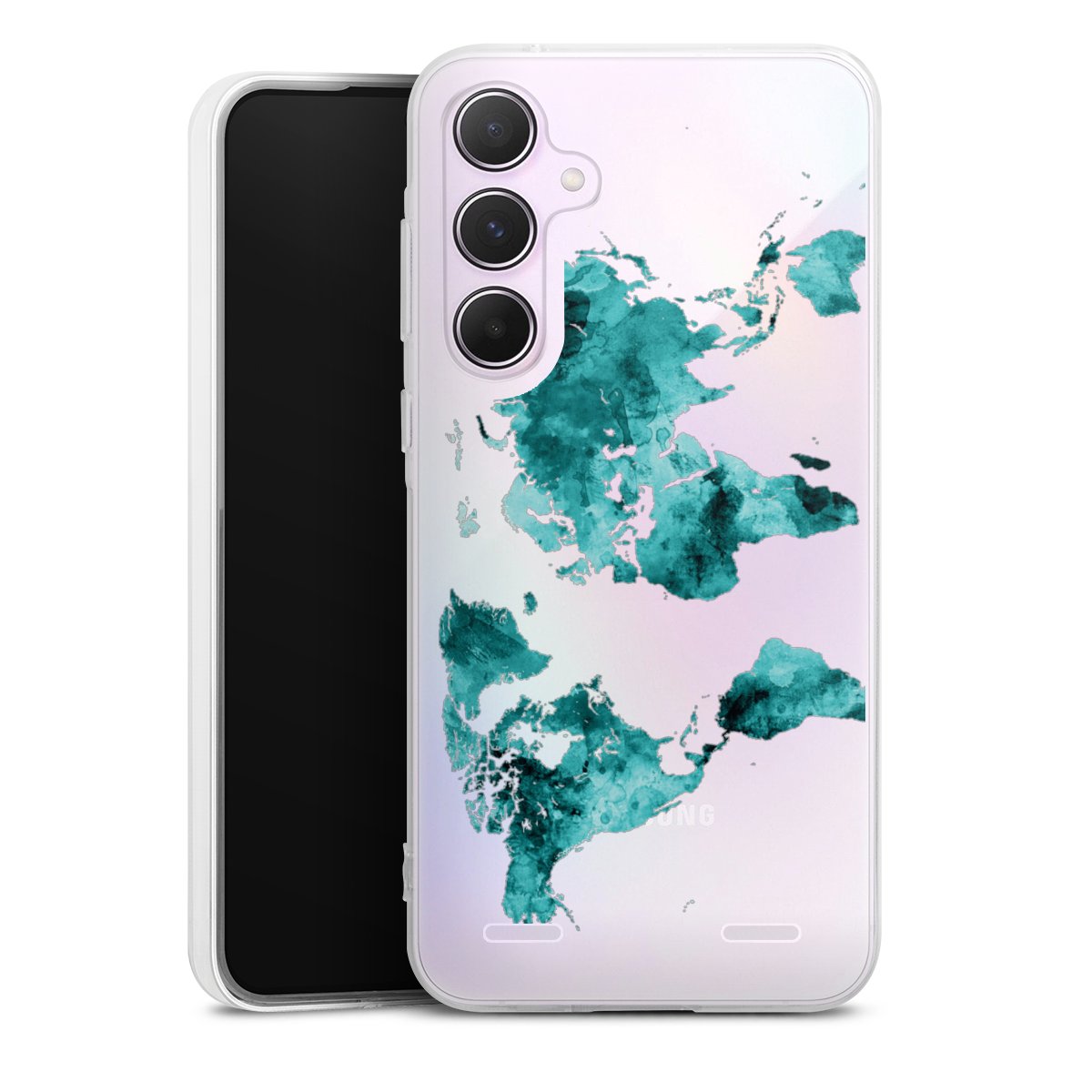 World Map Teal Transparent