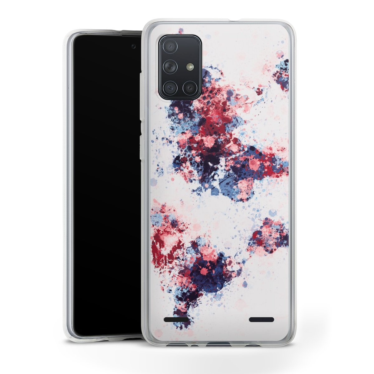 World Map Paint Splashes Blue Red