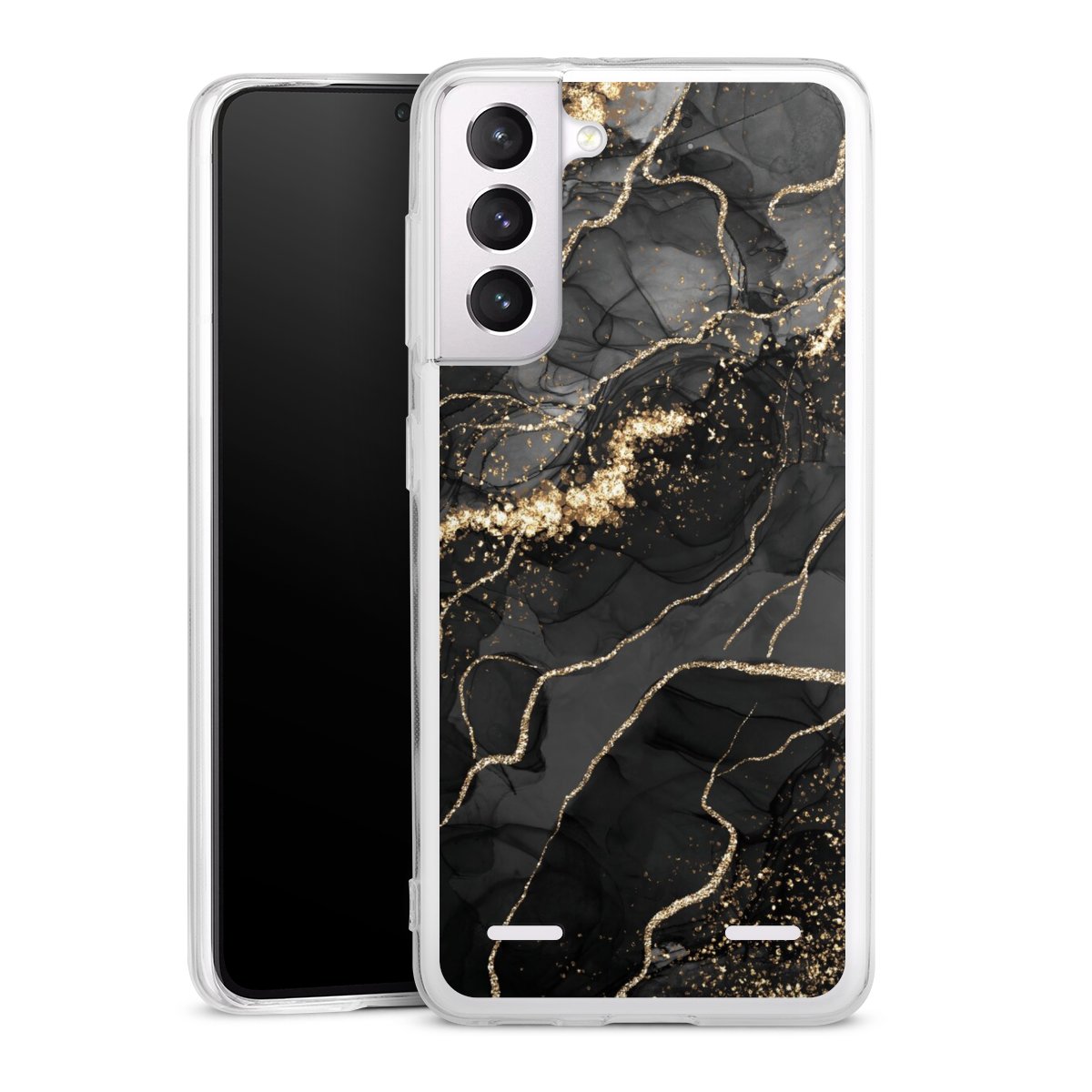Dark Marble Swirls Gold Look
