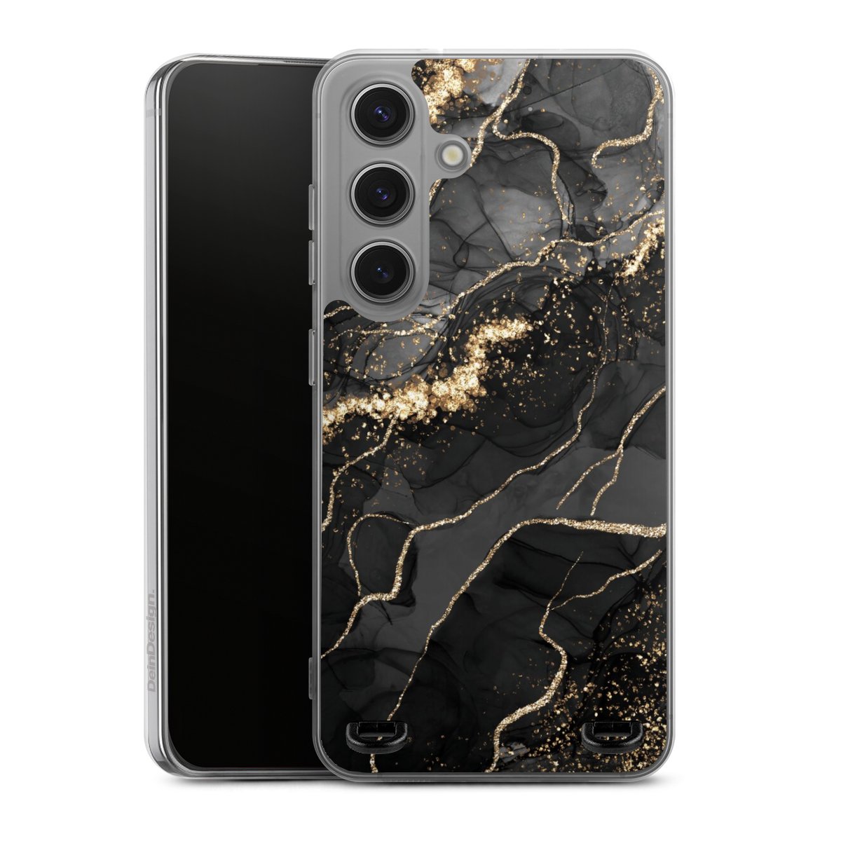 Dark Marble Swirls Gold Look